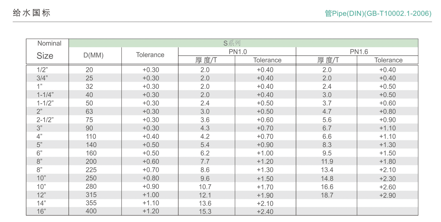 云和给水国标规格